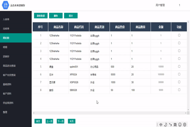 此模塊用于錄入入庫信息,可根據商品名稱或商品代碼搜索當前庫存中的物品。